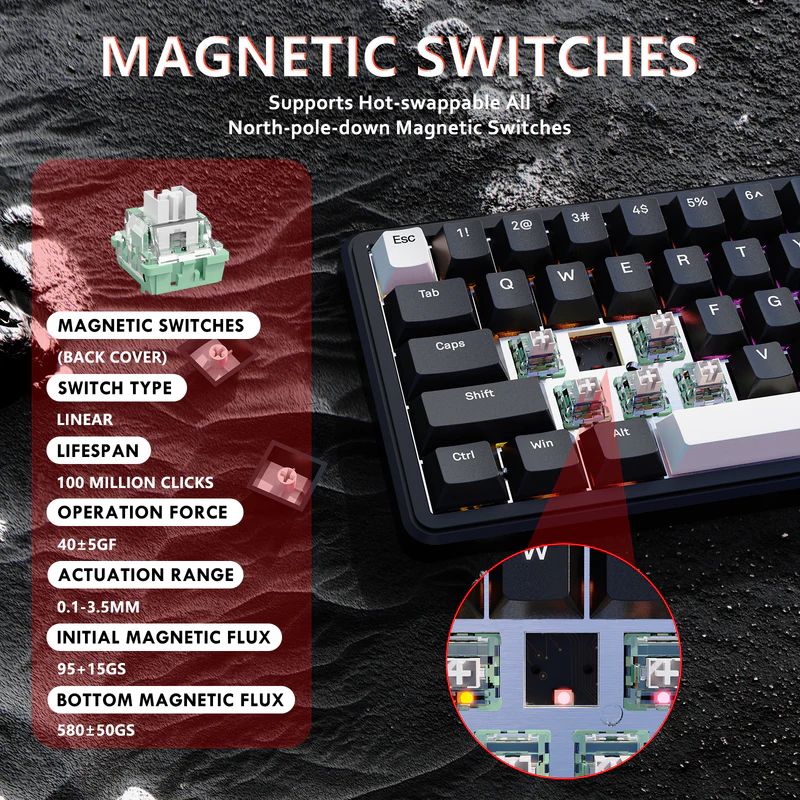 65% wired magnetic keyboard with 0.01 mm rapid trigger accuracy and zero dead zone